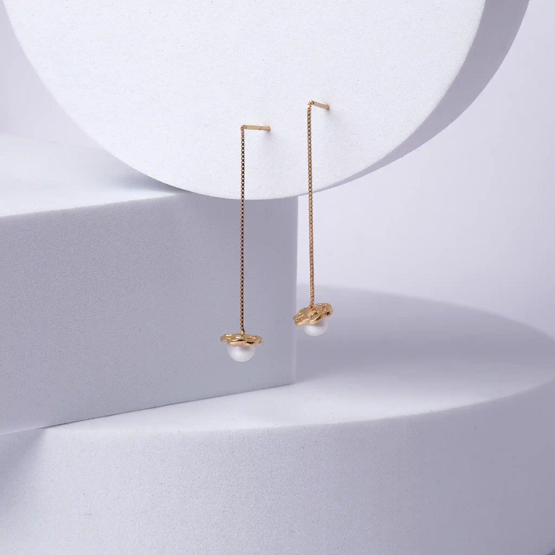 Hallmarked Silver earring with Gold Vermeil plating- 5x thicker gold plating that standard gold plating. Pearls are naturally cultured, real round pearls